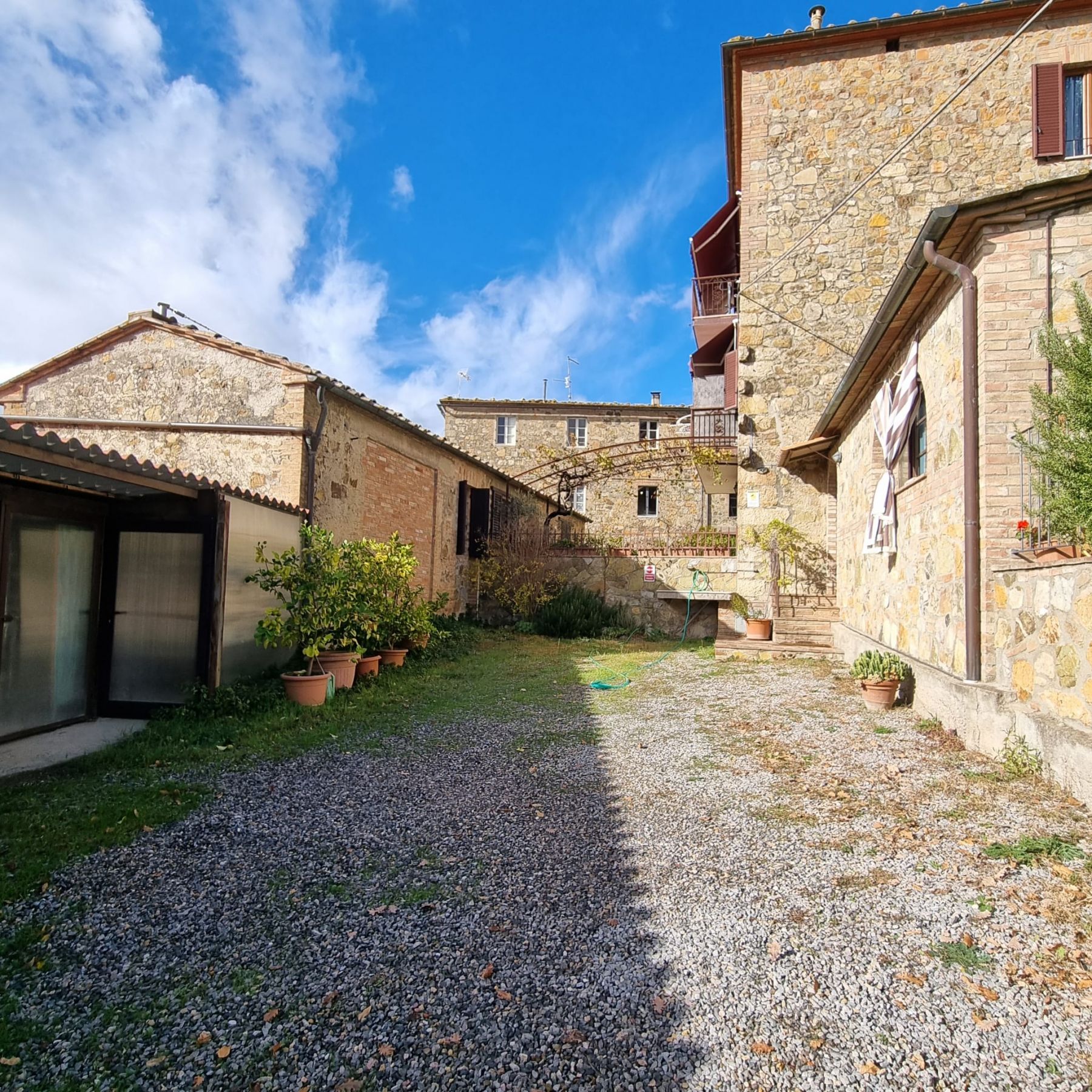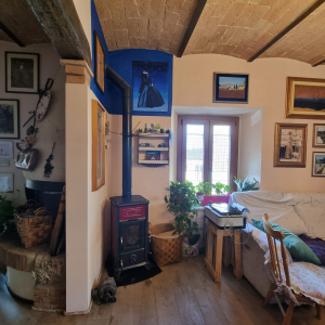 Casciano di Murlo (SI) Vendesi, in un borgo poco fuori dal paese, in posizione dominante, porzione di terratetto panoramico in pietra a vista di circa 280 m² (oltre resede esclusivo) sviluppato su due livelli completamente ristrutturato nel vecchio con rifiniture di pregio in stile tipico toscano, con volte e travi e travicelli.