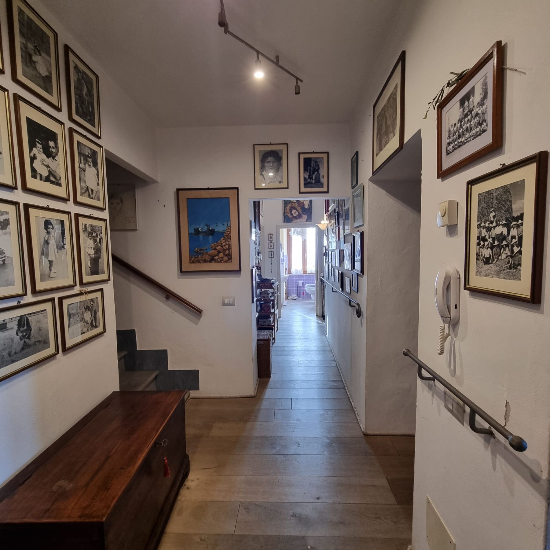 l'altro ingresso si trova sulla via principale di accesso che apre al piano terra in un ampio disimpegno e tramite scala interna (fornita di montascale elettrico a seduta) porta al piano superiore.