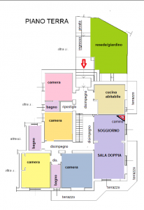 Al piano terra rialzato: ingresso indipendente con resede esclusivo che si ricollega al giardino sottostante - cucina abitabile con terrazza - salone doppio con affaccio su grande terrazza ad angolo - soggiorno con camino - 4 camere da letto - 3 bagni con finestra - ripostiglio.