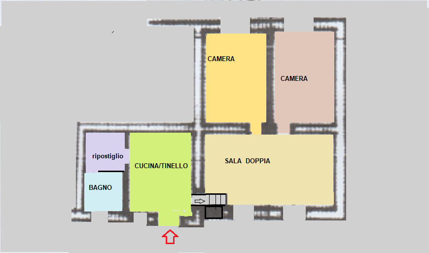 INGRESSO INDIPENDENTE - CUCINA/TINELLO - SALA DOPPIA (eventuale terza camera) - DUE CAMERE MATRIMONIALI - BAGNO - RIPOSTIGLIO