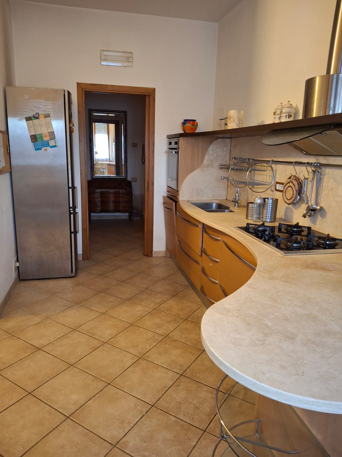 Sala grande con angolo cottura - 2 camere da letto matrimoniali - 2 bagni - ripostiglio - terrazzi - posto auto coperto